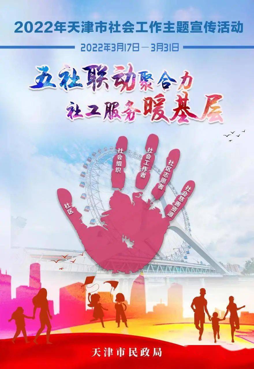 为贯彻落实习近平总书记关于社会工作的重要指示精神,宣传社会工作专业优势,展示社会工作发展成果,推动社会工作事业发展,根据民政部相关工作要求,3月17日天津启动2022年社会工作主题宣传活动,今年的宣传主题是“五社联动聚合力 社工服务暖基层”。